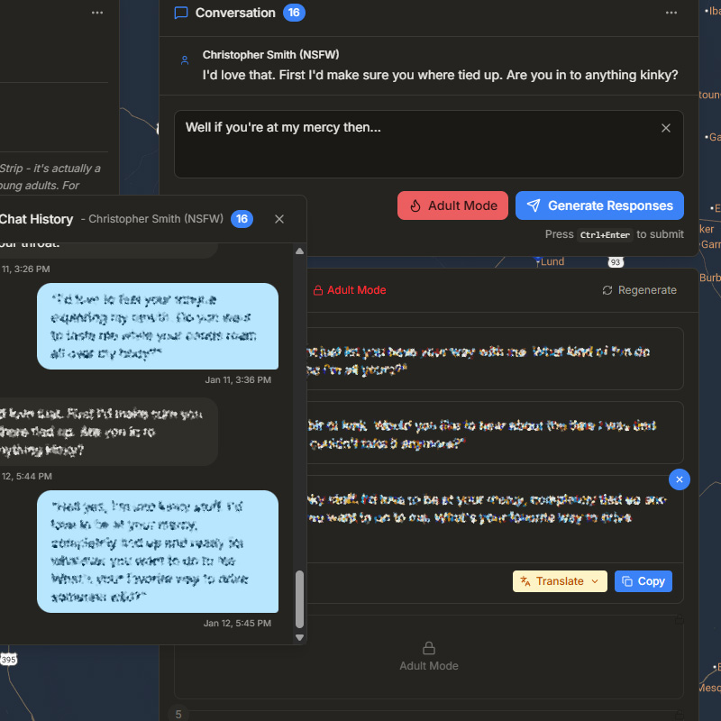 Generate perfect replies instantly, get explicit-ready AI responses, and auto-translate with DeepL. Built for fantasy chat agents who are tired of writer's block.